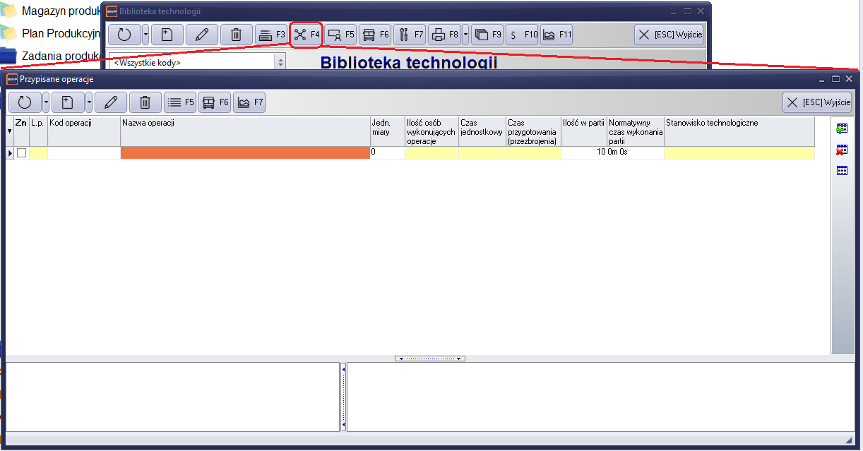 Operacje przypisujemy z poziomu listy operacji technologicznych.