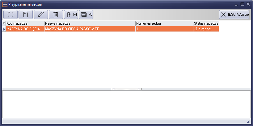 W karcie technologicznej powinny zostać zdefiniowane niezbędne narzędzia potrzebne do wytworzenia danego wyrobu. Listę narzędzi otwieramy przy pomocy klawisza „F7” w głównym oknie procesów technologicznych.