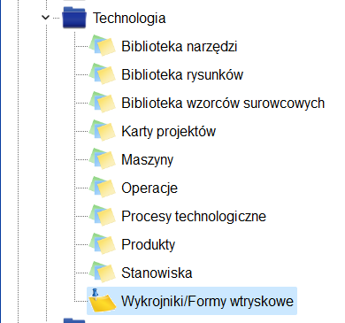Rysunek 682 Pozycja kartoteki wykrojników w głównym menu