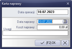 Kartotekę można uzupełnić, kiedy stan kartoteki będzie ponownie zmieniony ze stanu „w naprawie” na „użytkowanego”.