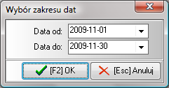 Po uruchomieniu analizy należy wybrać zakres dat, według którego program wybierze pozycje rejestru do analizy. Datą wg której następuje wyselekcjonowanie wybraków jest data otwarcia dokumentu zlecenia zmianowego.