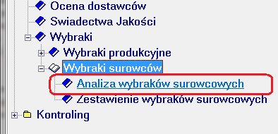 Analiza przedstawia listę wybraków surowcowych w zadanym okresie czasu. Analizę możemy uruchomić z poziomu menu głównego programu lub z poziomu przeglądu rejestru wybraków surowcowych.