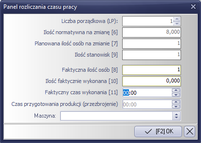 „Faktyczny czas wykonania” – jest to czas rzeczywiście poświęcony na wykonanie operacji, wprowadzany ręcznie na podstawie raportu z wykonanych prac.