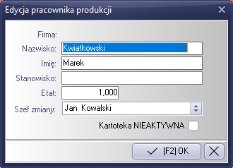 Rysunek 790 Formularz edycji pozycji listy pracowników produkcji.