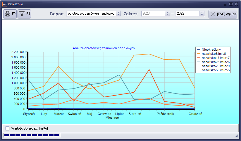- „Wartość sprzedaży”- pozwala na obserwowanie wskaźnika sprzedaży firmy w odniesieniu do lat poprzednich.