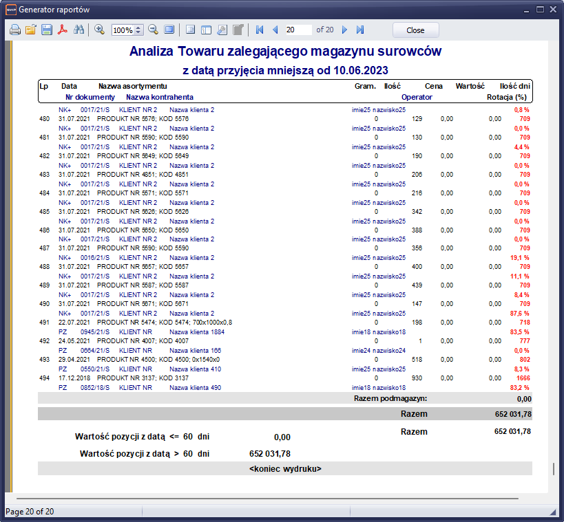 Rysunek 818 Przykładowy wydruk analizy towaru zalegającego