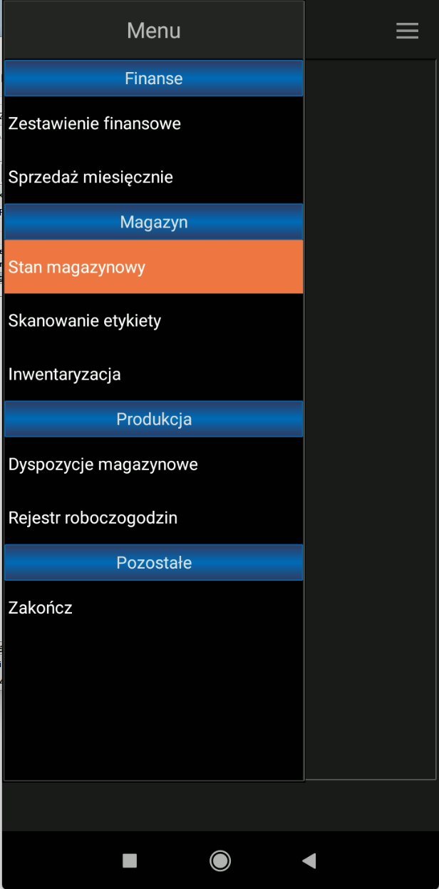 W celu uruchomienia opcji stanu magazynowego, wybieramy z menu głównego odpowiednią pozycję sekcji "Magazyn" (rys.1).
